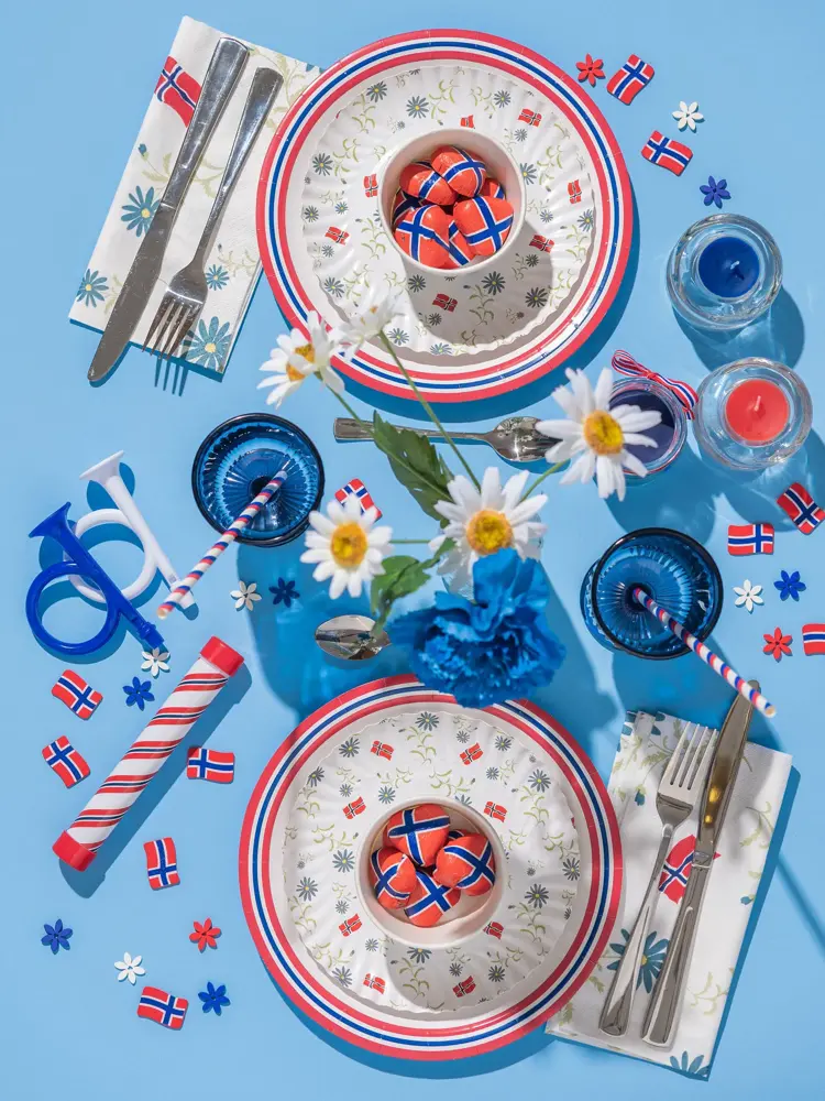 En annen måte du kan pynte bordet på er å dekorere det med «små flagg, konfetti eller blomster i rødt, hvitt og blått for å virkelig løfte borddekkingen. Med enkle, men effektive detaljer er du klar for å feire dagen med stil!” – Princess.
